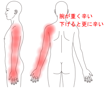 腕を上げると楽になるが、それをすると脇の下が突っ張ってきて、辛くなる。